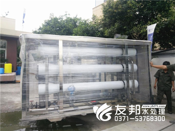 鄭州友邦出品的每一套設備就像工藝品,經過仔細的包裝,包裹,小心的裝車。避免在運輸過程中的磕磕碰碰。這是發往山西的6噸純凈水設備,全程需要500多公里的運輸。