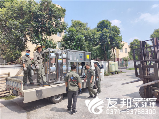 近日鄭州雨水不斷,給出行帶來了諸多不便,但依然阻擋不住鄭州友邦工作人員對工作的熱情。接下來裝車發貨的是一套5噸單級純凈水設備
